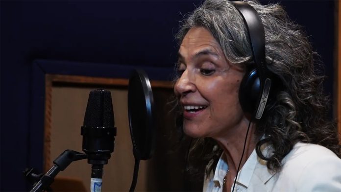 Simone em estúdio na gravação de ‘Jardim’, versão em português de ‘Jardins d’hiver’, para o álbum ‘Henri Salvador do Brasil’